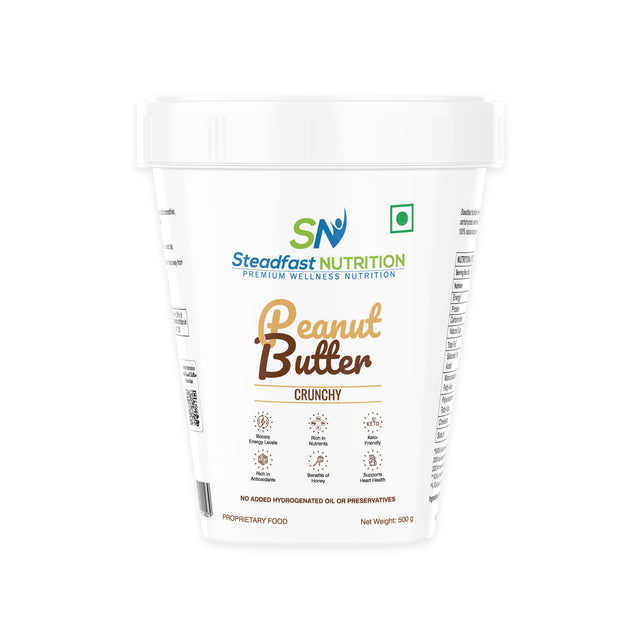 Steadfast Peanut Butter Crunchy is a healthy and convenient way to include good proteins, healthy fats, and carbohydrates. It is roasted peanut paste with small pieces of crunchy peanut. Each 30 g serving of Peanut Butter Honey Crunchy contains 12.7 g of good fats, 8.8 g of protein, and 7 g of carbohydrate and is free of added sugar, salt, hydrogenated oil, or preservatives, making it safe for consumption. Peanut Butter is flavoured with delicious honey.