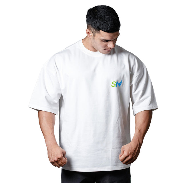 • The half-sleeved White Crew tee is easy-breezy wear for all bodybuilding enthusiasts.